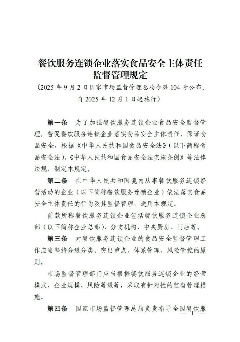 近日,市場監(jiān)管總局對外發(fā)布《餐飲服務連鎖企業(yè)落實食品安全主體責任監(jiān)督管理規(guī)定》(以下簡稱《規(guī)定》),加強餐飲服務連鎖企業(yè)食品安全監(jiān)督管理,督促其落實食品安全主體責任。